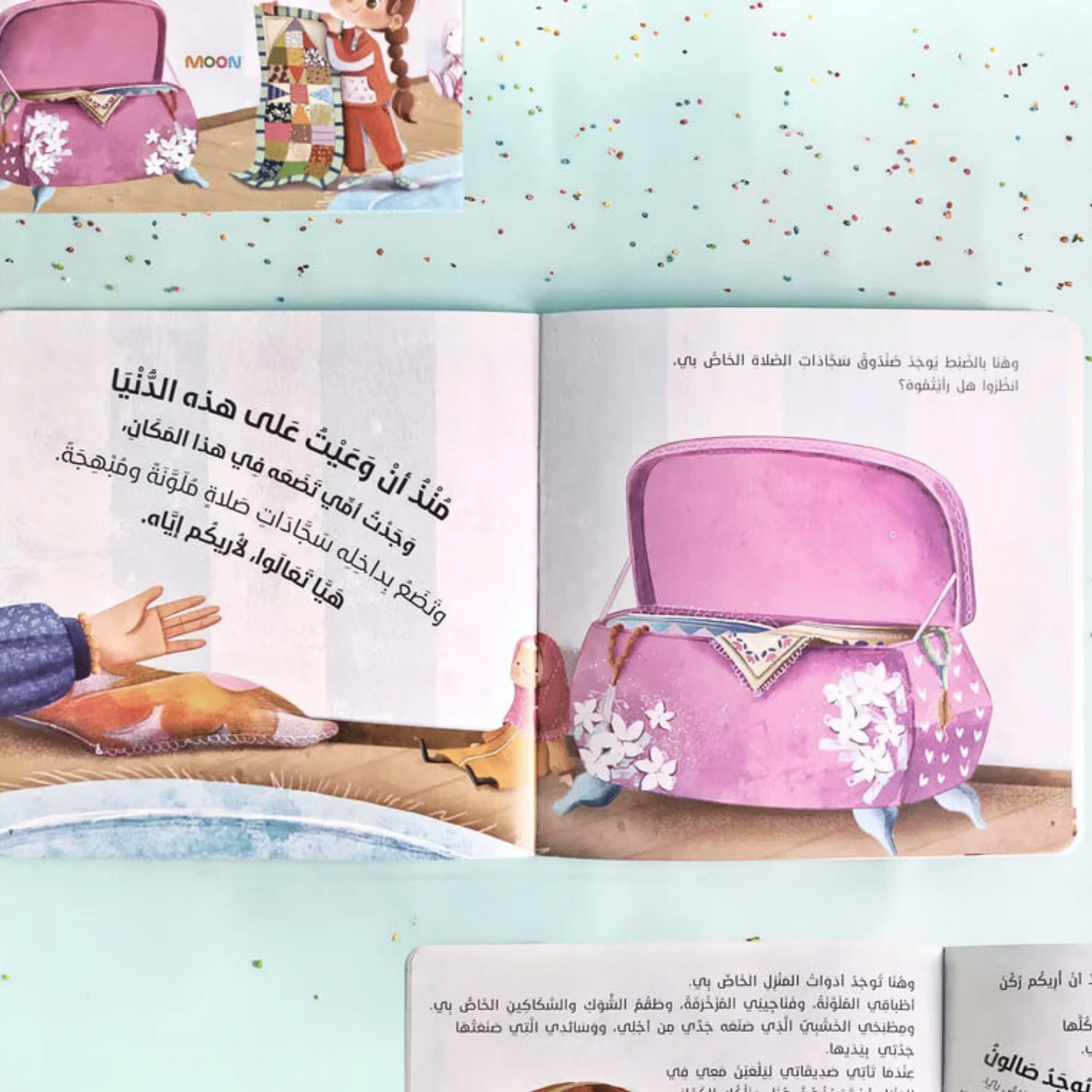 سجادتي الجميلة قصة تأخذنا في رحلة مشوّقة إلى عالم الصلاة من خلال عيون طفلة صغيرة. كتاب يعزز حب الأطفال للصلاة, يروي قصة فتاة صغيرة ترى في سجادة الصلاة أكثر من مجرد قطعة قماش—إنها رابطٌ روحاني، ذكرى عائلية، وأداة تعزز حبها للصلاة منذ الصغر. تأخذنا بطلتنا الصغيرة في رحلةٍ عبر سجاداتها المختلفة، حيث لكل سجادة قصة وذكرى جميلة! من سجادة والديها إلى سجادة حصلت عليها كهدية، كل واحدة تحكي عن حبها للصلاة وقيمتها في حياتها
